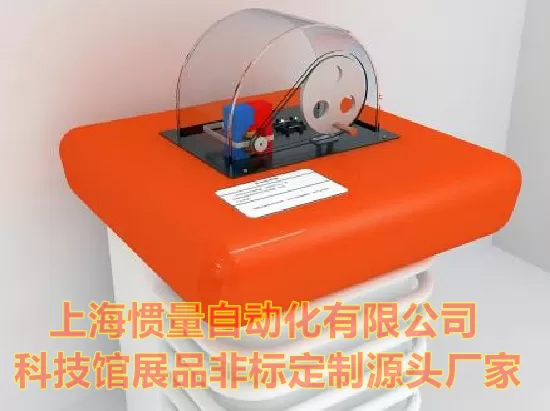 观众通过观看旋转的油液中两个小球的变化,了解离心力的知识。本展项由展台、转盘、亚克力筒、按钮、油液、乒乓球、钢球组成。 在展台上设置一个圆形转盘,转盘上有两个呈八字形左右倾斜的圆柱体透明容器,其中装有油液,并分别放置一个乒乓球和一个小球。参与者触摸台面的启动按钮,转盘即会带动圆柱体容器中的油液旋转起来。由于离心力的作用,静止时漂浮在油液顶部的乒乓球会沉下去,而容器底部的钢球则漂浮起来。