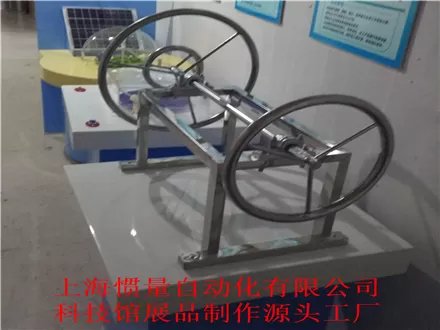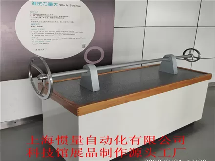旋转与力的大小物体的不仅效果,而且对力点,相关的力的方向。当盘具有相同的尺寸,较大磁盘直径,长臂,大扭矩的力而旋转;和小直径盘,短臂,转矩小。科技馆展品制作生产源头工厂-上海惯量自动化有限公司提示大家作用在轴上垂直于轴线,而不是通过轴扭转力矩的力轴线产生,该力的大小的力从轴的垂直距离的乘积。即F×R(F-力,R-手轮半径),手的力产生的扭转力矩为2F·R = F·d(D-手轮的直径),它可以从上面,不仅的大小可以看出扭矩和作用在手轮约,而且还与手轮的直径上的力,当该力常数,较大直径的手轮扭矩的产生也变。